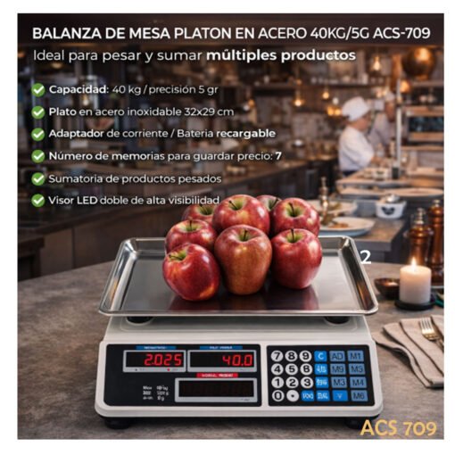 Balanza digital mesa acero inoxidable 40kg ACS-709