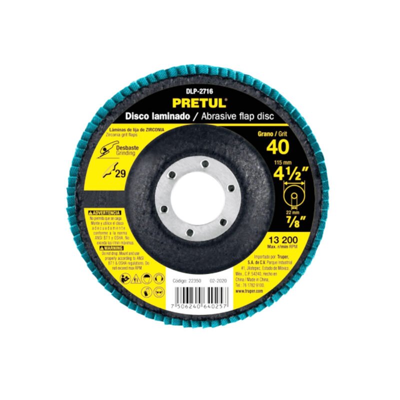 Discos Flap laminados 4 1/2″ centro 7/8″Pretul