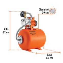 Bomba hidroneumática Truper de 1/2 HP con tanque de 50 litros. Ideal para mantener presión constante en instalaciones residenciales.