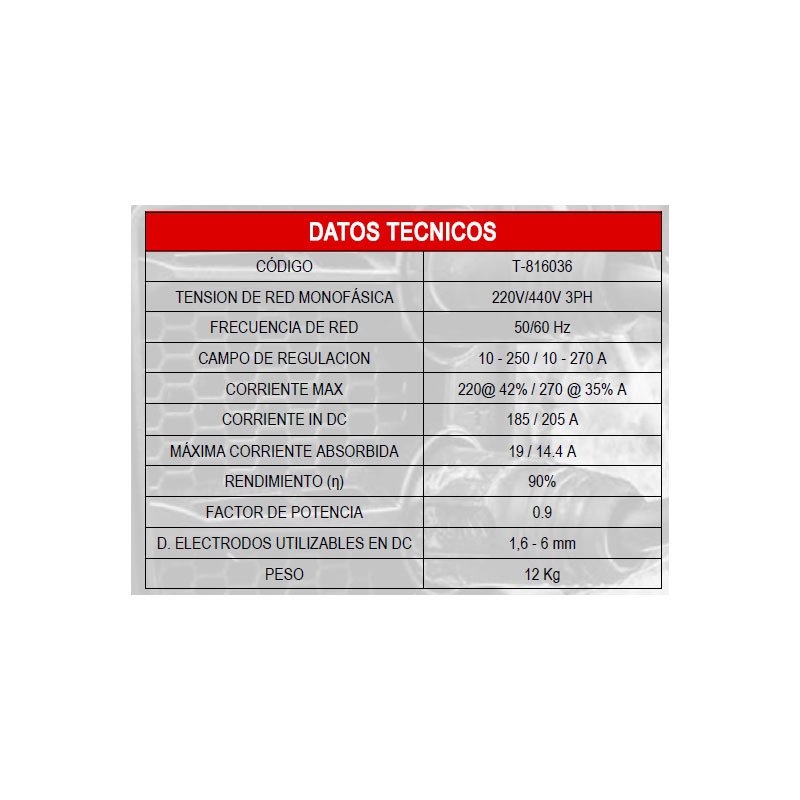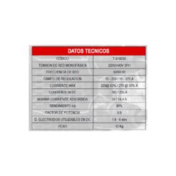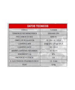 Soldadora inverter MMA y TIG-LIFT en corriente continua (DC) con control a microprocesador. Diseñada para la soldadura con electrodos celulósicos y electrodos revestidos del tipo aluminio, rutilo, básico, inoxidable, de fundición de hasta un diámetro 6 mm.
