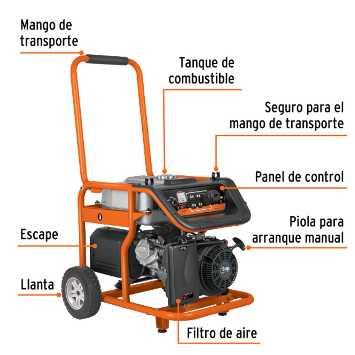 28 L de capacidad del tanque de gasolina para 6.5 horas de trabajo continuo