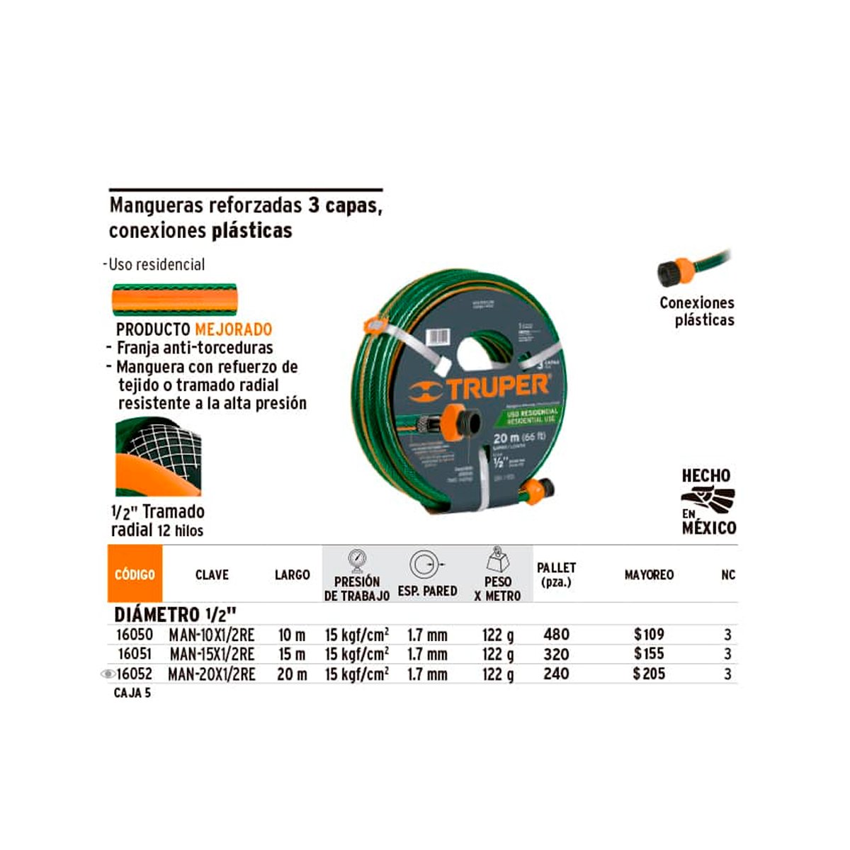 Costilla anti-torceduras con refuerzo de tejido o tramado radial resistente a la alta presión ESPECIFICACIONES